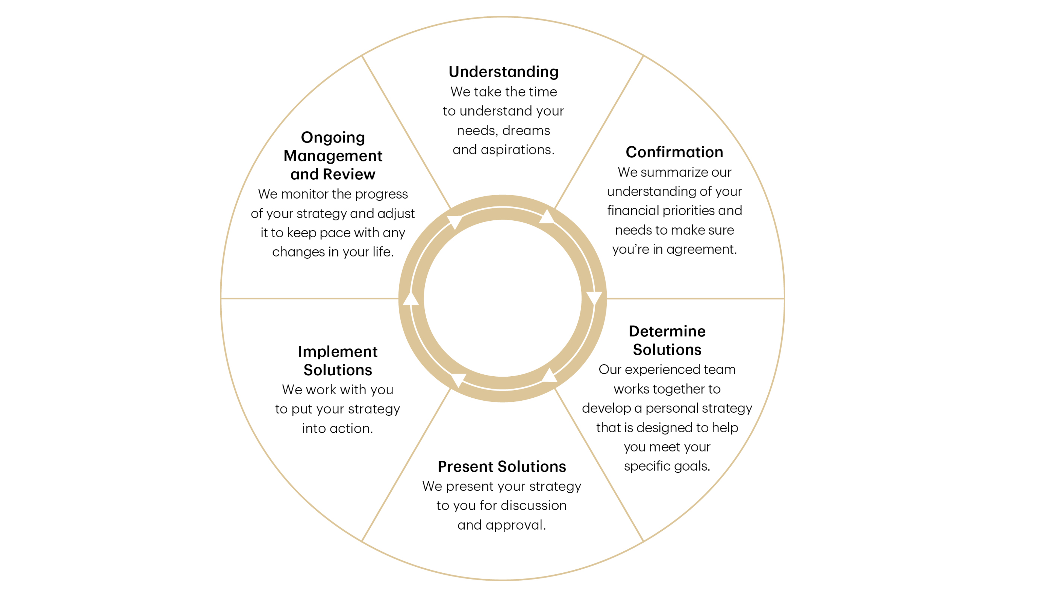 Our disciplined approach to wealth management starts with a unique deep discovery process. This helps to clarify your financial situation, identifies your short, medium and long-term personal and financial goals, and uncovers what is truly important to you and your family.