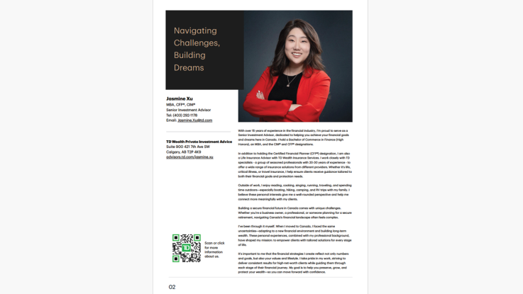 My 2026 brochure is live. In it, I share the approach that guides my work—supporting clients through the complexities of building wealth in Canada with personalized, values‑aligned strategies. As someone who once faced these same challenges as a client myself, I'm dedicated to helping you move forward with confidence at every stage of your financial journey. Download it here.